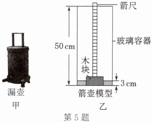 5. (泰安中考)古代有一种计时器称为“漏刻”,其计时原理是通过漏壶或箭壶中水量的均匀变化来度量时间。图甲为我国国家博物馆收藏的西汉时