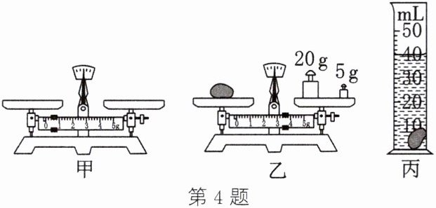 g。接着他在量筒中倒入 30 mL 的水,再将石块浸没在水中,水面位置如图丙所示,则石块的密度为2.84