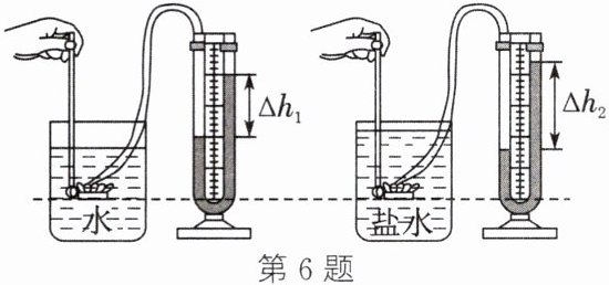 6. (南通中考)利用压强计探究液体内部压强与液体密度的关系。