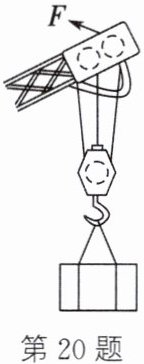 20. (7分)如图所示,塔式起重机上的滑轮组将重为$1.2×10^4N$的重物吊起,在20s内重物匀速上升2m,滑轮组的机械效率为80%。