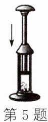 5. 如图所示,在厚壁玻璃筒中放入一小块硝化棉,用力迅速下压活塞,可以观察到硝化棉燃烧,这是由于迅速下压活塞使筒内空气的内能