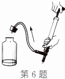 6. 如图所示,在做功改变内能的实验中,老师向装有少量水的瓶子内不断打气,使得瓶内的气压增大,水蒸气的内能