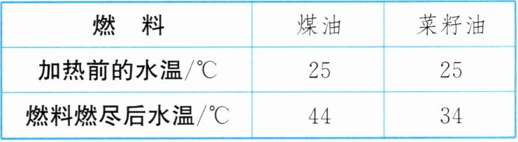 (2)根据他们的实验记录,你认为煤油和菜籽油两种燃料中,热值较大的是