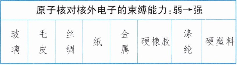 典例2 部分物质的原子核对核外电子束缚能力的强弱如表所示,小星同学将与涤纶摩擦后的玻璃棒靠近悬挂的轻质小球,发现轻质小球被吸引,如图所示,下列说法正确的是 (