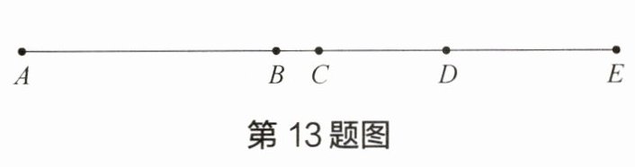 13 如图,已知$ A E = 14 \mathrm { cm } $,点B为AE上一点,$ A B = \frac { 3 } { 4 } B E $,点C为AE中点,点D为BE中点,求线段CD的长。