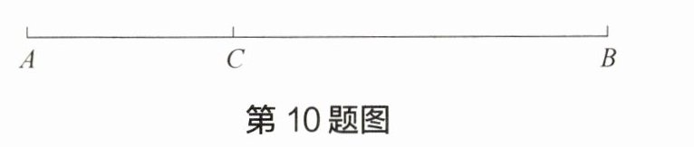 10 如图,点C在线段AB上,图中共有三条线段AC、BC和AB。如果其中一条线段的长度是另外一条线段长度的2倍,那么称点C是线段AB的“2倍点”。如果$ AB = 18 $,点C是线段AB的“2倍点”,那么AC的长为 。
