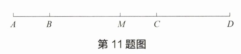 11 如图,点A、B、M、C、D在同一条直线上,点M为AD的中点,$ BM = 6 \mathrm { cm } $,$ AB = CM $,$ BM = 2 C M $,求AD的长。