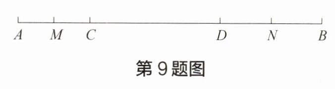 9 如图,点C、D是线段AB上的两点,$ AB = a $厘米,$ CD = b $厘米,点M、N分别为AC、BD的中点,那么MN的长为 。(用含有a、b的式子表示)