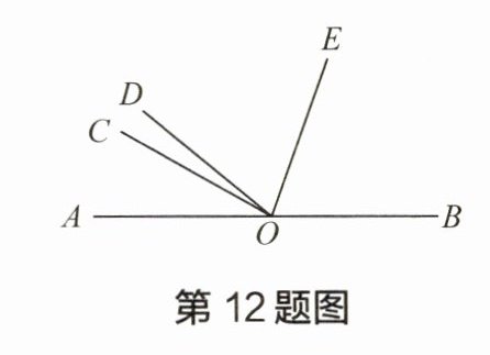 12 如图,点 $ A $、$ O $、$ B $ 在同一条直线上,$ \angle AOC = 3\angle COD $,$ OE $ 平分 $ \angle BOD $。