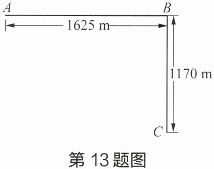 13 如图,街道 ABC 在点 B 处拐弯,在街道的一侧要等距离安装路灯,要求在点 A、B、C 处各安装一盏路灯,问:最少要安装多少盏路灯?