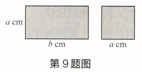 9 如图,有一个长方形和一个正方形,它们的周长和为______,当 $ a = 2 $,$ b = 3 $ 时,它们的周长和为______。