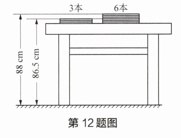 12 如图,两摞规格完全相同的课本整齐地叠放在讲台上,请根据图中所给出的数据信息,回答下列问题: