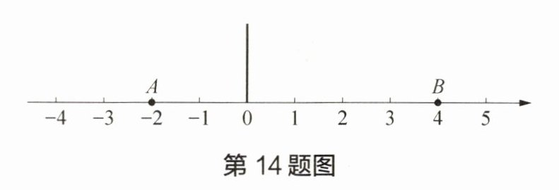 14 如图,在数轴上点A表示的数是-2,点B表示的数是4。若在原点处放一块挡板,小球甲从点A以1个单位/秒的速度向左匀速运动;同时小球乙从点B处以2个单位/秒的速度也向左匀速运动,在碰到挡板后(忽略球的大小,可看作一点,挡板厚度忽略不计)以原来的速度向相反的方向运动。设运动的时间为t秒。