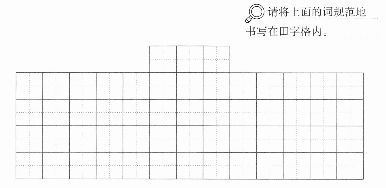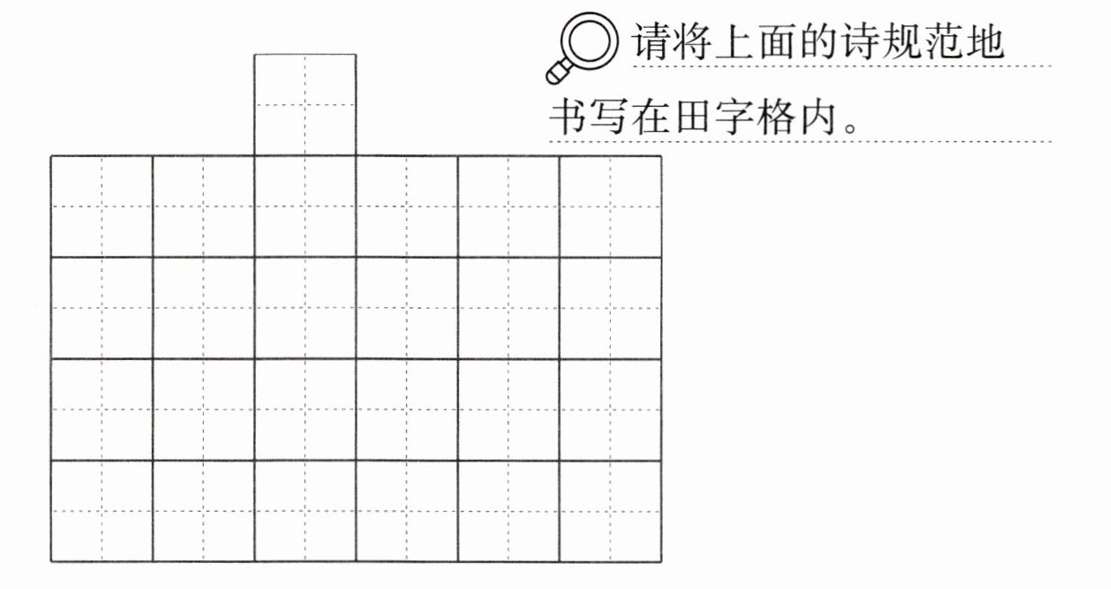 请将上面的诗规范地书写在田字格内。