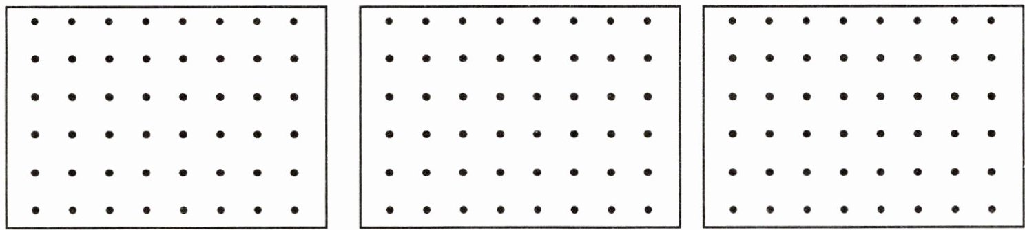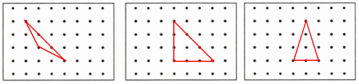 三、在下列方框中,分别画一个等腰钝角三角形、一个直角三角形和一个锐角三角形,要求三角形的顶点都在点上。