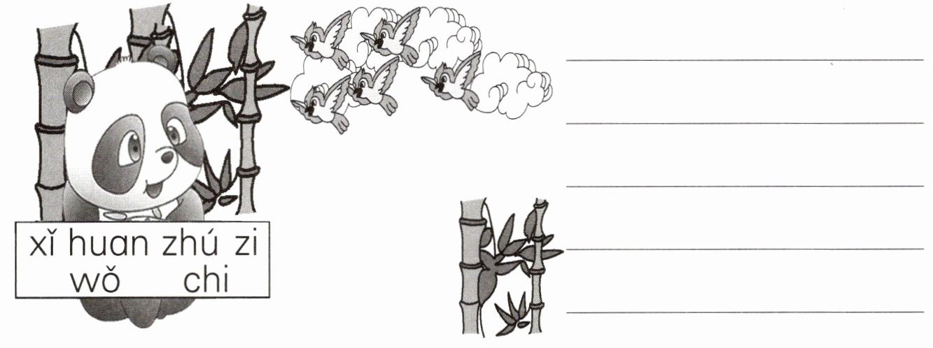三 你 能 用 大 熊 猫 身 上 的 音 节 写 句 子 吗?