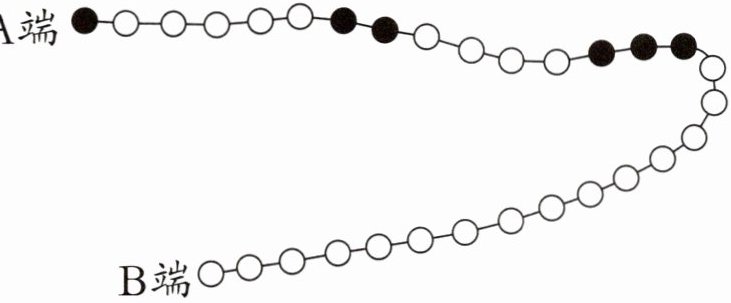 根据下面一串黑白珠子的排列规律,看一看应该把哪些珠子涂黑。从A端开始,第30颗珠子是什么颜色的?