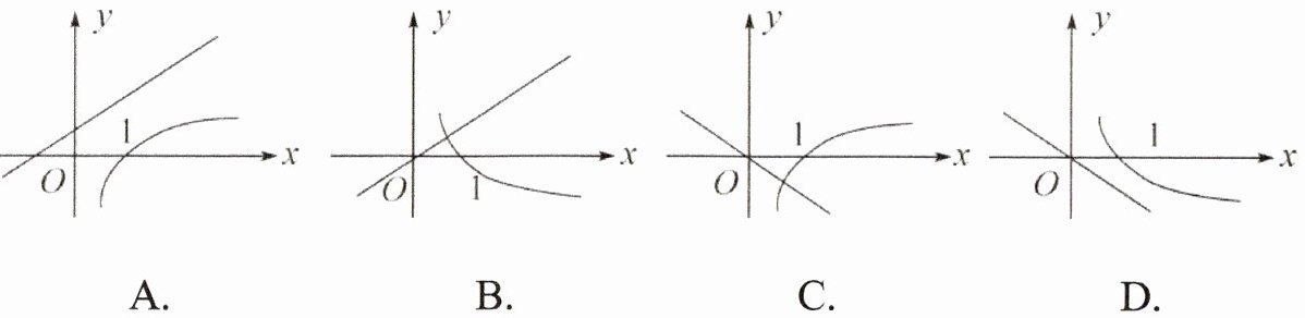 10. 当$0<a<1$时,函数$y= log_{a}x和函数y= (1-a)x$的图像只能是(