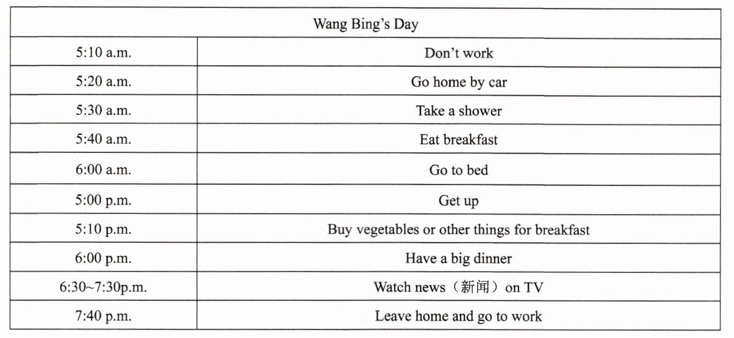 )16. — When does Wang Bing have breakfast? — ______.A. At 5:20 in the morning B. At 5:10 in the afternoon C. At 5:40 in the morning D. At 6:00 in the afternoon