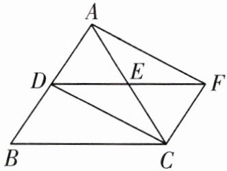 10. 如图,在$\triangle ABC$中,D,E分别是AB,AC的中点,F是DE延长线上的点,且$EF= DE$.
