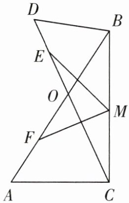 8. 如图,AB,CD 相交于点 O,且$BD= BO,CA= CO$,E,F,M 分别是 OD,OA,BC 的中点.求证:$ME= MF$.