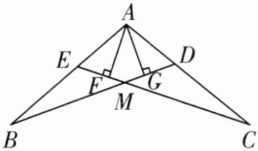 7.如图,$AB= AC$,点D,E分别在AC,AB上,$AG⊥BD$,垂足为点G,$AF⊥CE$,垂足为点F,且$AE= AD,EF= DG$.求证:$BG= CF$.