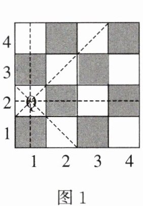 国际象棋、中国象棋和围棋号称世界三大棋种.国际象棋中“后”的威力可比中国象棋中“车”大得多:“后”不仅能控制其所在的行与列中的每一个小方格,还能控制“斜”方向的两条直线上的每一个小方格.图1是一个$4×4$的小方格棋盘,图中的“后Q”能控制图中虚线所经过的每一个小方格.