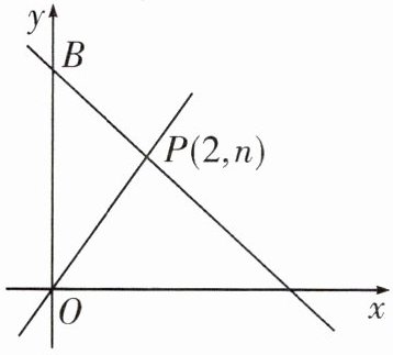 10. 如图所示,一次函数$y= -x+m$的图象和y轴交于点B,与正比例函数$y= \frac{3}{2}x的图象交于点P(2,n)$.