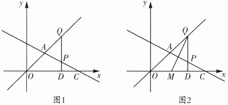 4. (石室联中)如图1,直线y = $\frac{3}{4}x$和直线y = -$\frac{1}{2}x + b$相交于点A,直线y = -$\frac{1}{2}x + b$与x轴交于点C,点P在线段AC上,PD⊥x轴于点D,交直线y = $\frac{3}{4}x$于点Q. 已知点A的横坐标为4.