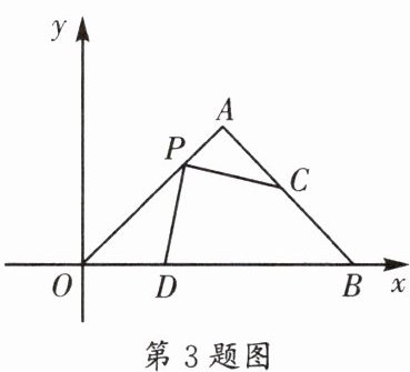3. (树德实验)如图,在等腰 $ \text{Rt} \triangle ABO $ 中,$ \angle OAB = 90^{\circ} $,$ A(4,4) $,$ C $ 为 $ AB $ 的中点,$ OD:BD = 1:3 $,$ P $ 为边 $ OA $ 上的动点,当点 $ P $ 在 $ OA $ 上移动时,四边形 $ PDBC $ 周长的最小值为____。