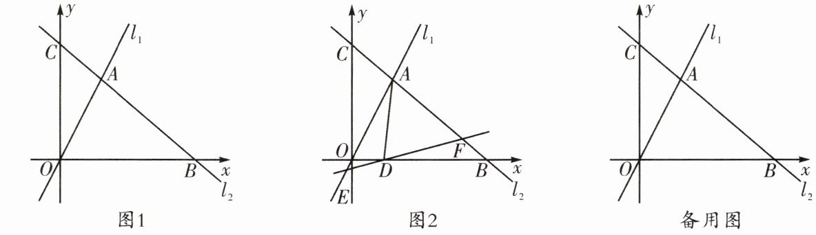 (2) 如图 2, 过点 $ D(1,0) $ 作直线分别交直线 $ l_1, l_2 $ 于点 $ E $ (点 $ E $ 在第三象限), $ F $.