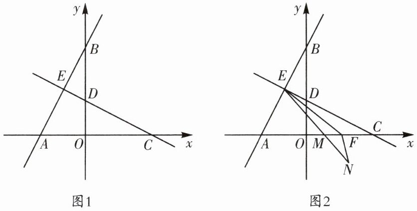 (3)如图2,在(2)的条件下,$F为线段AC$上一动点,将$\triangle EFC沿直线EF翻折得到\triangle EFN$,$EN交x