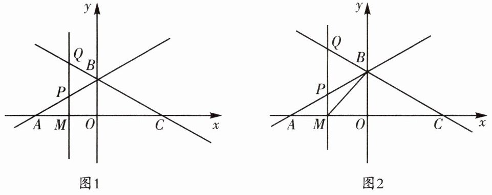 (2)设$M是x$轴上的一个动点,过点$M作y$轴的平行线,交直线$AB于点P$,交直线$BC于点Q$。