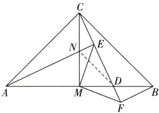 $\because M$是$AB$的中点,$CA=CB,∠ACB=90^{\circ },\therefore CM=\frac{1}{2}AB=BM=AM,CM⊥AB,\therefore ∠CMB=90^{\circ }$.