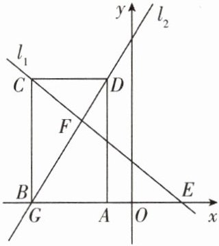 2. (天府新区期末)如图,已知直线$l_{1}:y= -x+2与直线l_{2}:y= 2x+8相交于点F$,$l_{1}$,$l_{2}分别交x轴于点E$,$G$,长方形$ABCD的顶点C$,$D分别在直线l_{1}$,$l_{2}$上,顶点$A$,$B都在x$轴上,且点$B与点G$重合。