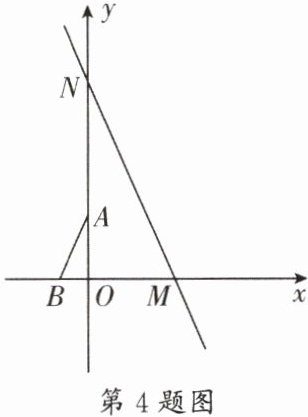 4. (青羊区期末)如图,在平面直角坐标系中,直线$y= -\sqrt{3}x+4与x$轴、$y轴分别交于点M$,$N$,点$A$,$B分别在y$轴、$x$轴上,且$\angle BAO= 30^{\circ}$,$AO= 2$.将$\triangle ABO绕原点O$顺时针转动一周,当$AB与直线MN$垂直时,点$A$的坐标为____.