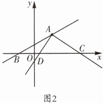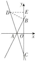 $\because\angle BAD = 45^{\circ}$,$\therefore\triangle BAD$是等腰直角三角形,$\therefore AB = DB$。$\because\angle OAB+\angle ABO=\angle ABO+\angle DBE = 90^{\circ}$,$\therefore\angle OAB=\angle DBE$。在$\triangle ABO$和$\triangle BDE$中,$\begin{cases}\angle OAB = \angle DBE,\\\angle AOB = \angle BED,\\AB = DB,\end{cases}$$\therefore\triangle ABO\cong\triangle BDE(AAS)$,$\therefore BE = OA = 2$,$DE = BO = 4$,$\therefore D(-4,6)$。设直线$AC$的函数表达式为$y = kx + b$,把点$A$,$D$的坐标代入,得$\begin{cases}-2k + b = 0,\\-4k + b = 6,\end{cases}$解得$\begin{cases}k = -3,\\b = -6,\end{cases}$$\therefore$直线$AC$的函数表达式为$y = -3x - 6$,$\therefore$点$C$的坐标为$(0,-6)$。