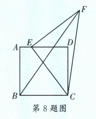 8.(石室联中)如图,四边形ABCD是边长为4的正方形,点E在边AD上,连接CE,以CE为直角边作等腰直角$\triangle CEF$(点D、F在直线CE的同侧),连接BF.若$AE= 1$,则$BF= $______.