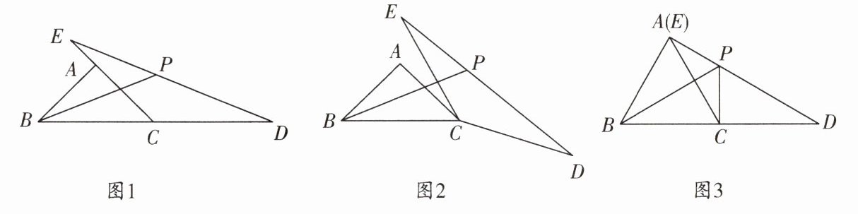 3. (锦江区期末)在 $\triangle ABC$ 中,$AB = AC$,$CE = CD = BC(CE \geq CA)$,$\angle ACB + \angle ECD = 180^{\circ}$,$P$ 为直线 $DE$ 上一点,且 $PB = PD$。