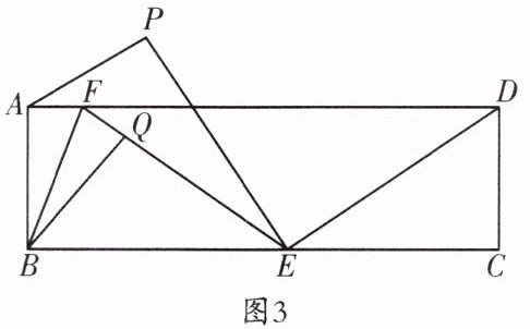 (3) 如图 3,若 $AB = 1$,$AD = 3$,将线段 $DE$ 绕点 $E$ 逆时针旋转 $90^{\circ}$ 至线段 $PE$ 的位置,连接 $AP$,当 $AP \leq \frac{\sqrt{5}}{3}$ 时,直接写出线段 $AF$ 长度的取值范围。