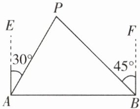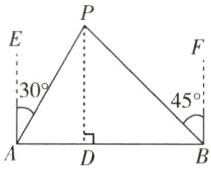 3. (成华区期末)如图,东西走向的 A,B 两座城市相距 100 千米,现计划要在两座城市之间修筑一条高等级公路(即线段 AB). 经测量,森林保护区的中心点 P 在 A 城市的北偏东 30°方向,B 城市的北偏西 45°方向上. 已知森林保护区的范围在以点 P 为圆心,50 千米为半径的圆形区域内. 请问:计划修筑的这条高等级公路会不会穿越森林保护区?为什么?