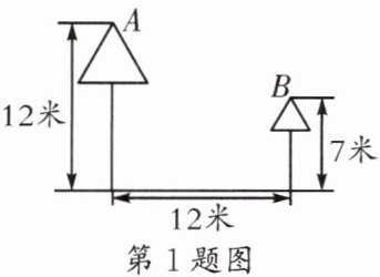 1. (高新区期末)如图,有两棵树,一棵高12米,另一棵高7米,两树相距12米,一只小鸟从一棵树的树梢A飞到另一棵树的树梢B,则小鸟至少要飞行
