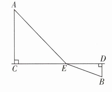 3. (实外)如图,$A$,$B$两个工厂位于一段直线形河的异侧,$A厂到河边的距离AC = 5\mathrm{km}$,$B厂到河边的距离BD = 1\mathrm{km}$,经测量$CD = 8\mathrm{km}$,现准备在河边某处(河宽不计)修一个污水处理厂$E$.