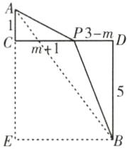 $2\sqrt {13}$ 【解析】$\because \sqrt {m^{2}+2m+2}+\sqrt {m^{2}-6m+34}=\sqrt {(m+1)^{2}+1}+\sqrt {(m-3)^{2}+25}=\sqrt {(m+1)^{2}+1}+\sqrt {(3-m)^{2}+25}$,$\therefore$ 可构造两直角边为 $m+1$ 和 $1$ 的 $Rt\triangle ACP$,两直角边为 $3-m$ 和 $5$ 的 $Rt\triangle BDP$,点 $P$ 在线段 $CD$ 上,则 $AP=\sqrt {(m+1)^{2}+1}$,$BP=\sqrt {(3-m)^{2}+25}$。如图,连接 $AB$,则 $\sqrt {(m+1)^{2}+1}+\sqrt {(3-m)^{2}+25}=AP+BP\geqslant AB$,即 $\sqrt {(m+1)^{2}+1}+\sqrt {(3-m)^{2}+25}$ 的最小值是线段 $AB$ 的长,过点 $B$ 作 $BE\perp AC$,交 $AC$ 的延长线于点 $E$,则四边形 $BDCE$ 是矩形,$\therefore CE=BD=5$,$BE=CD=m+1+3-m=4$。在 $Rt\triangle ABE$ 中,$AE=AC+CE=1+5=6$,由勾股定理,得 $AB=\sqrt {AE^{2}+BE^{2}}=\sqrt {6^{2}+4^{2}}=2\sqrt {13}$,$\therefore \sqrt {(m+1)^{2}+1}+\sqrt {(3-m)^{2}+25}$ 的最小值为 $2\sqrt {13}$。