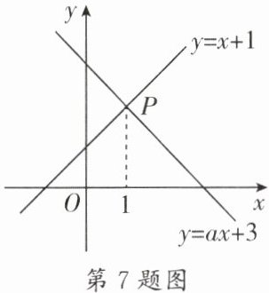 7. (成外)如图,已知函数$y = x + 1和y = ax + 3的图象交于点P$,且点$P的横坐标为1$,则关于$x$,$y的方程组\begin{cases}x - y = -1,\\ax - y = -3\end{cases} $的解是______.