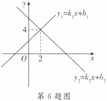 6. (双流区期末)如图,已知一次函数$y_1 = k_1x + b_1和y_2 = k_2x + b_2的图象交于点P(2,4)$,则关于$x的方程k_1x + b_1 = k_2x + b_2$的解是______.