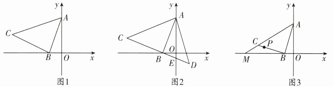 (2)如图2,直线$CB交y轴于点E$,在直线$CB上取一点D$,连接$AD$,若$AD = AC$,求证:$BE = DE$。