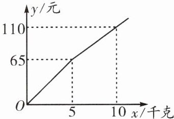3. (高新区期末)某单位准备购买一种水果,现有甲、乙两家超市搞促销活动,该水果在两家超市的标价均为13元/千克.甲超市购买该水果的费用y(元)与该水果的质量x(千克)之间的关系如图所示,乙超市的该水果在标价的基础上每千克直降3元.