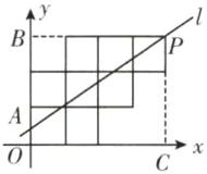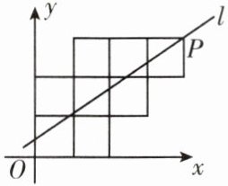 2.(青羊区期中)八个边长为 1 的正方形如图摆放在平面直角坐标系中,经过点 $ P $ 的一条直线 $ l $ 将这八个正方形分成面积相等的两部分,则该直线 $ l $ 的解析式为 ( )