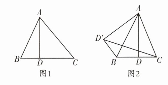 (2)如图2,在$\triangle ABC$中,$AB= \frac {25}{4}\sqrt {5},AC= \frac {5}{2}\sqrt {29}$,过点A作直线BC的垂线,交线段BC于点D,将$\triangle ABD$沿直线AB翻折后得到对应的$\triangle ABD'$,连接$CD'$,若$AD= \frac {25}{2}$,求线段$CD'$的长.